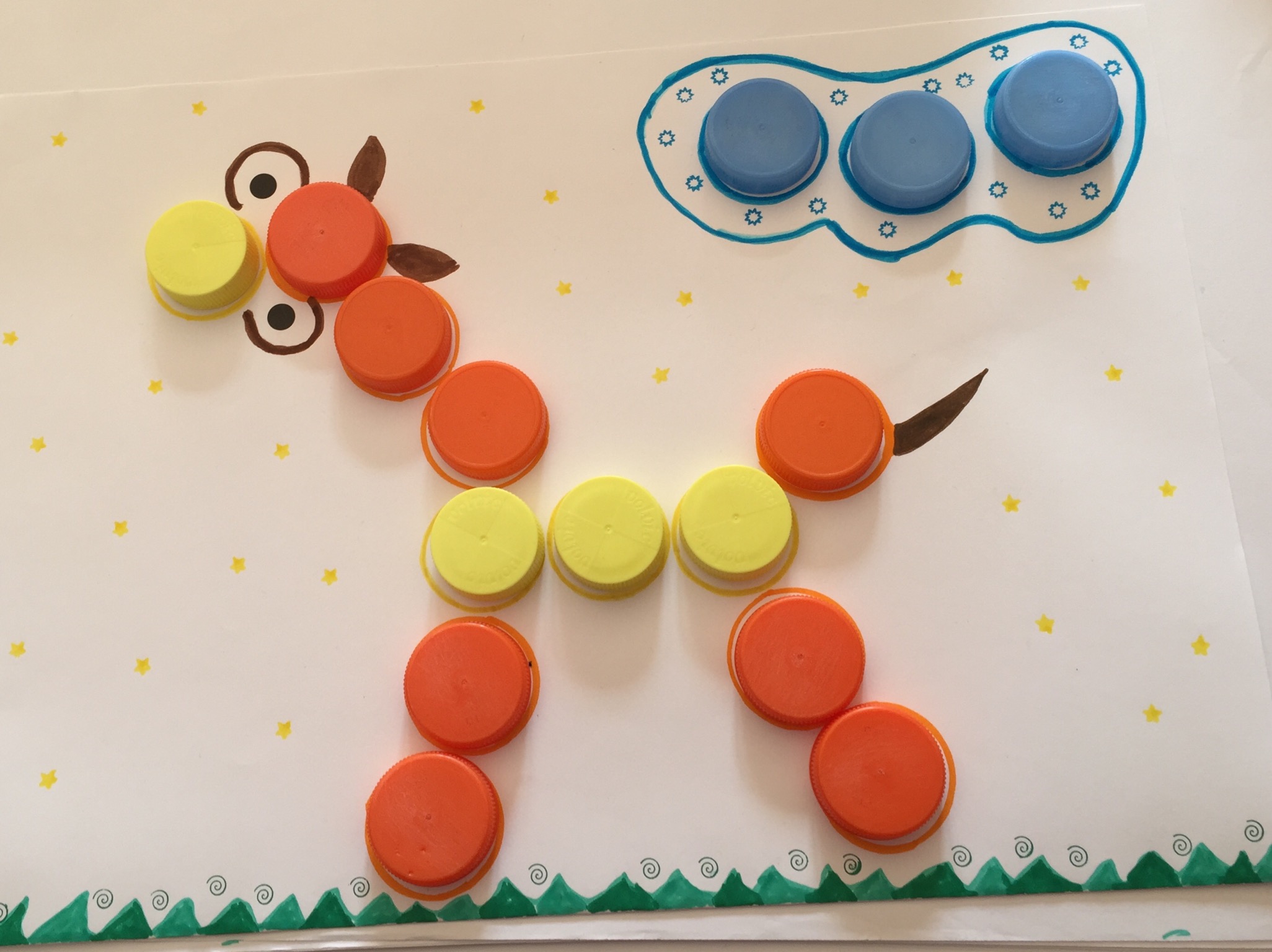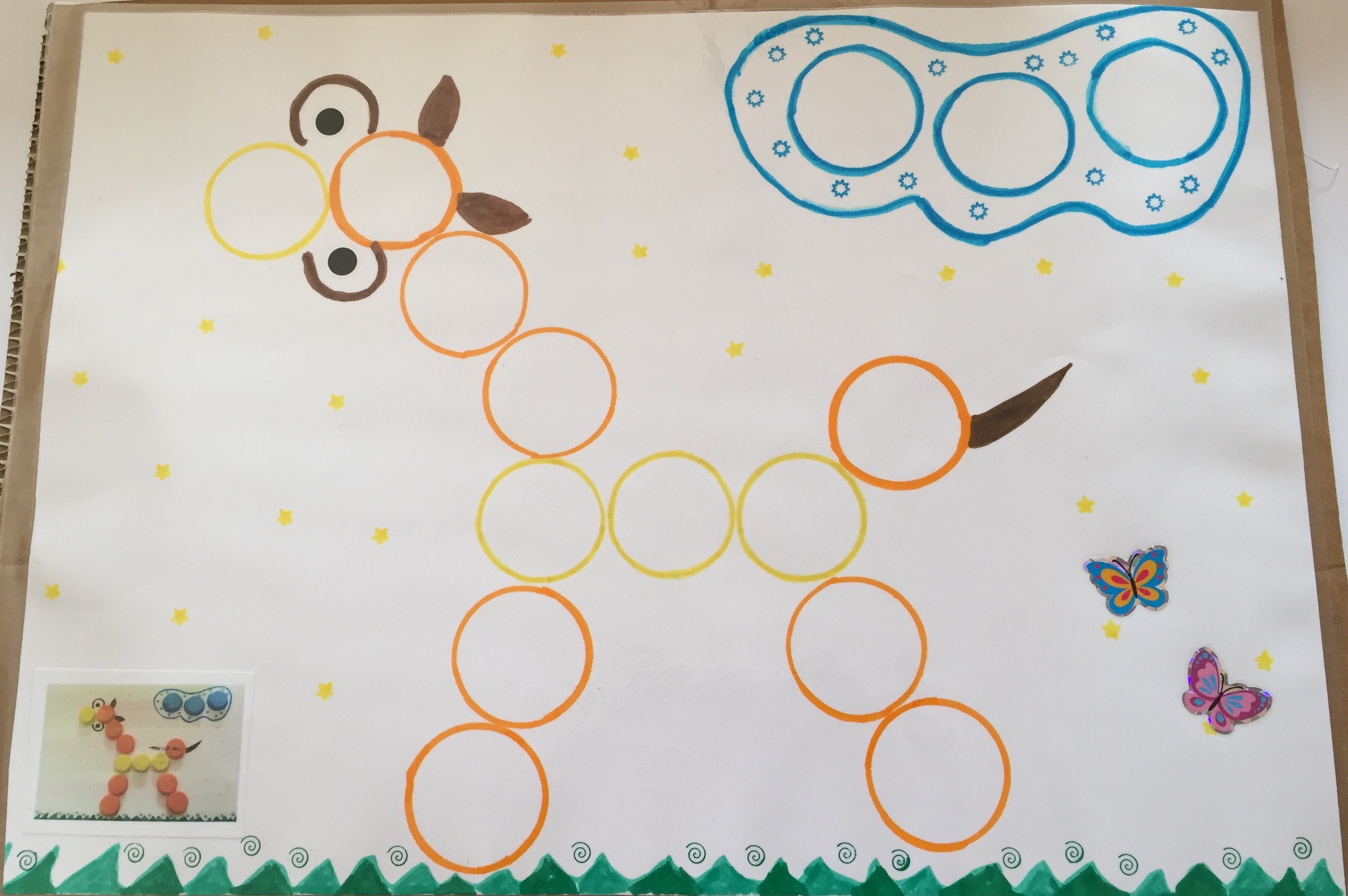 une fois réalisé vous le prenez en photo, pour coller la photo sur votre dessin afin que l’enfant ait le model pour le reproduire