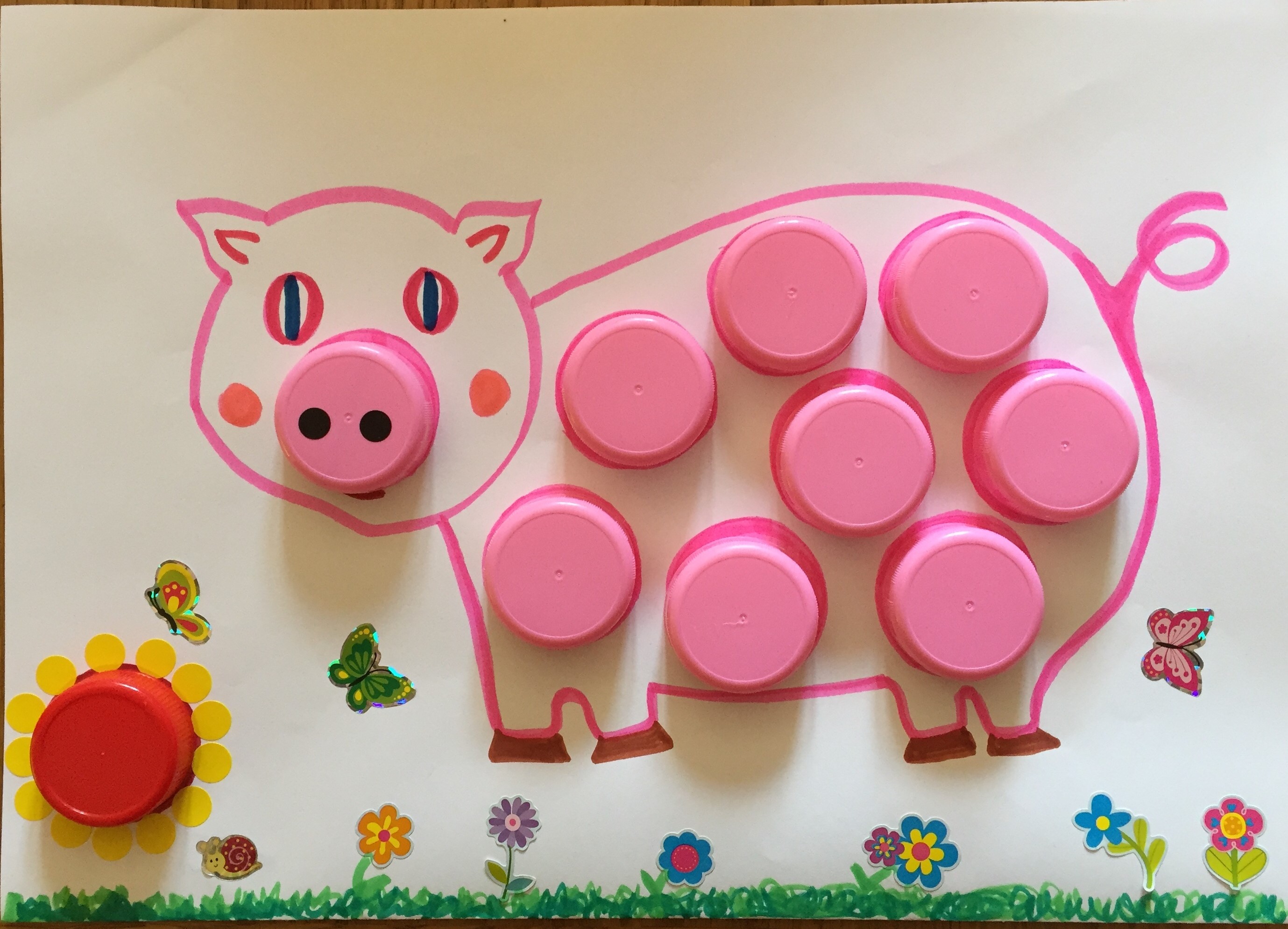 - 9 bouchons rose et 2 gommettes noir pour le nez à rajouter