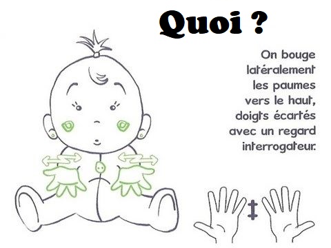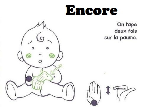 Les signes que j’identifie comme de la vie quotidienne, sont les mots d’usages courant, il y en a certainement d’autres, mais c’est ceux que nous allons employer le plus souvent avec un enfant.