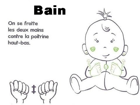 Un seul geste peut représenter toute une information, comme pour être changé, l’enfant peut employer le mot « changer » « couché » « caca ou pipi » ou 2 si l’enfant en a envie.