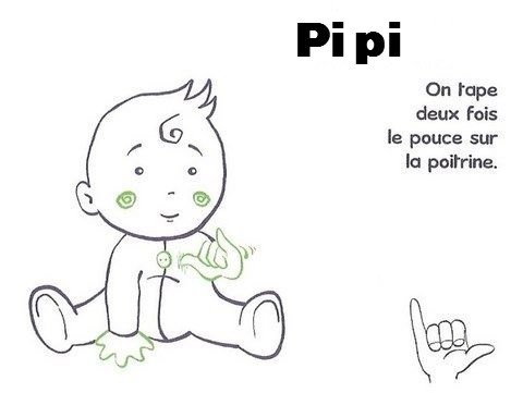 il peut aussi apprendre à dire avec les gestes le pot ou ne dire que Pipi ou caca car c’est ce qu’il aura retenu du geste qui est important.