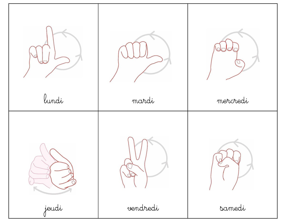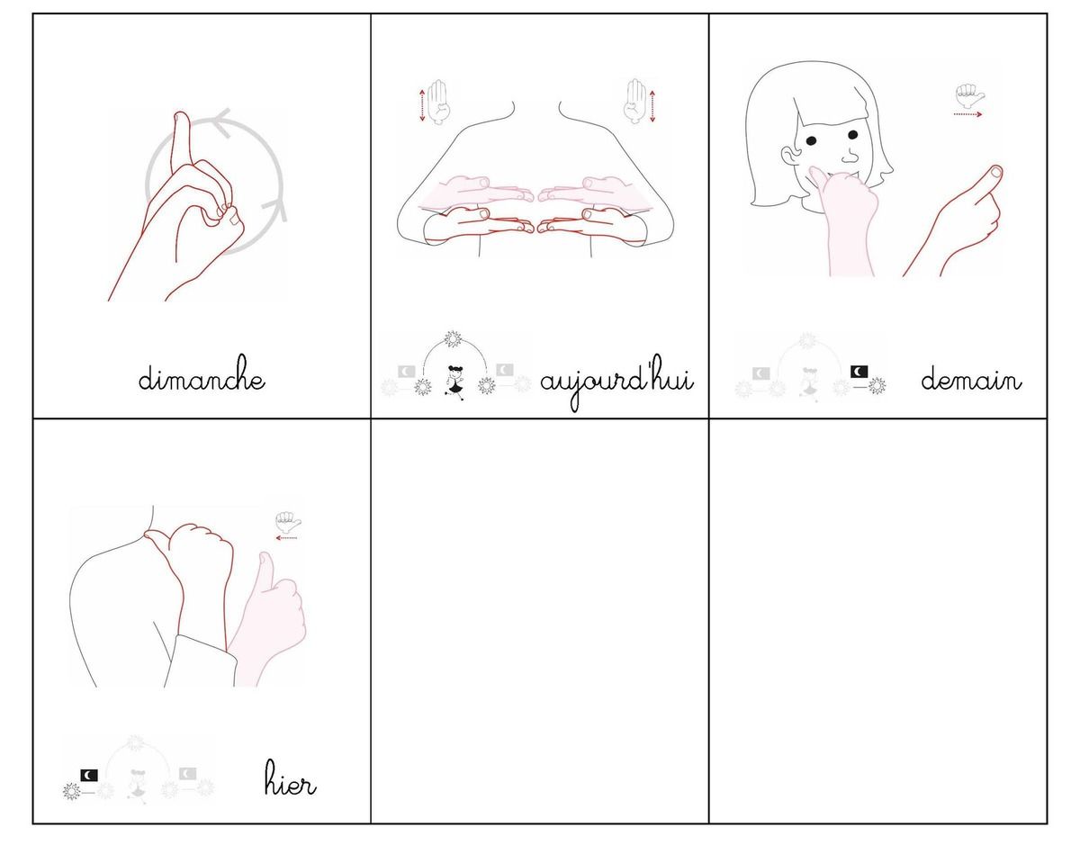 voici les jours de la semaine, mais aussi hier, aujourd’hui et demain, je trouve ces images super claires à reproduire, mais je ne sais pas de qu’elle livre ou auteur elles viennent ?