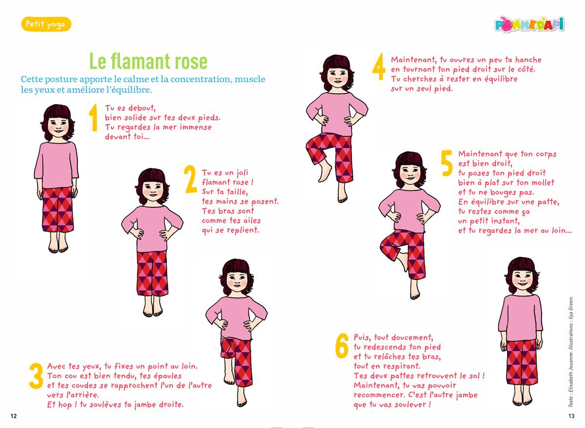 La flamant rose :Cette posture apporte le calme et la concentration, muscle les yeux et améliore l’équilibre