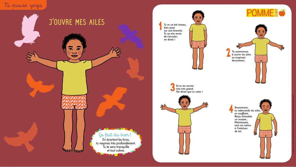 J’ouvre mes ailes: En écartant les bras, tu respires très profondément. Tu te sens tranquille et tout calme.