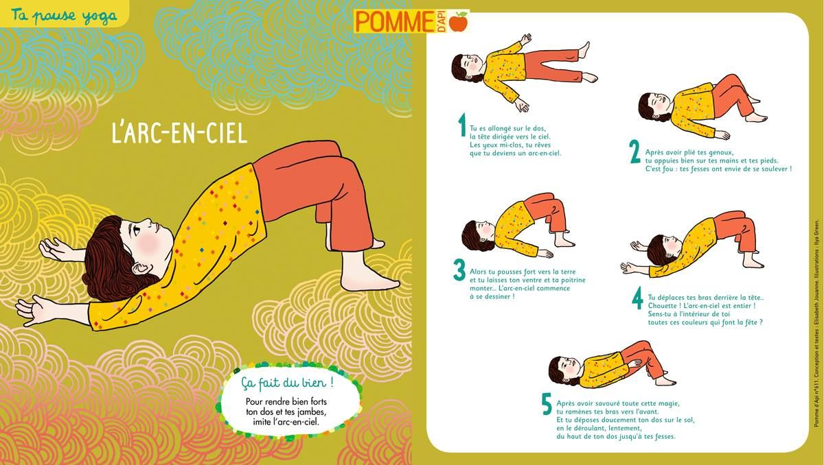 L’arc en ciel: Pour rendre bien forts ton dos et tes jambes, imite l’arc en ciel.
