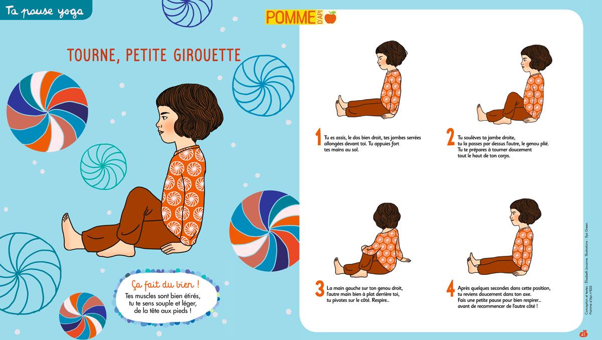 Tourne petite girouette: Tes muscles sont bien étirés, tu te sens souple et léger, de la tête aux pieds!