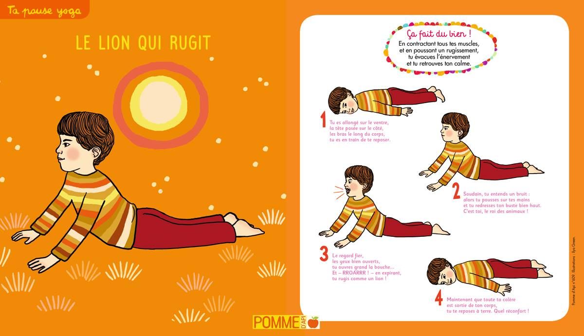 Le lion qui rugit :En contractant tous tes muscles, et en poussant un rugissement, tu évacues l’énervement et tu retrouves ton calme.
