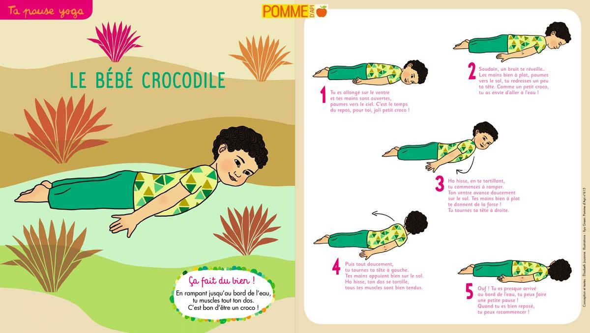 Le bébé crocodile:En rampant jusqu’au bord de l’eau, tu muscles tout ton dos. C’est bon d’être un croco!