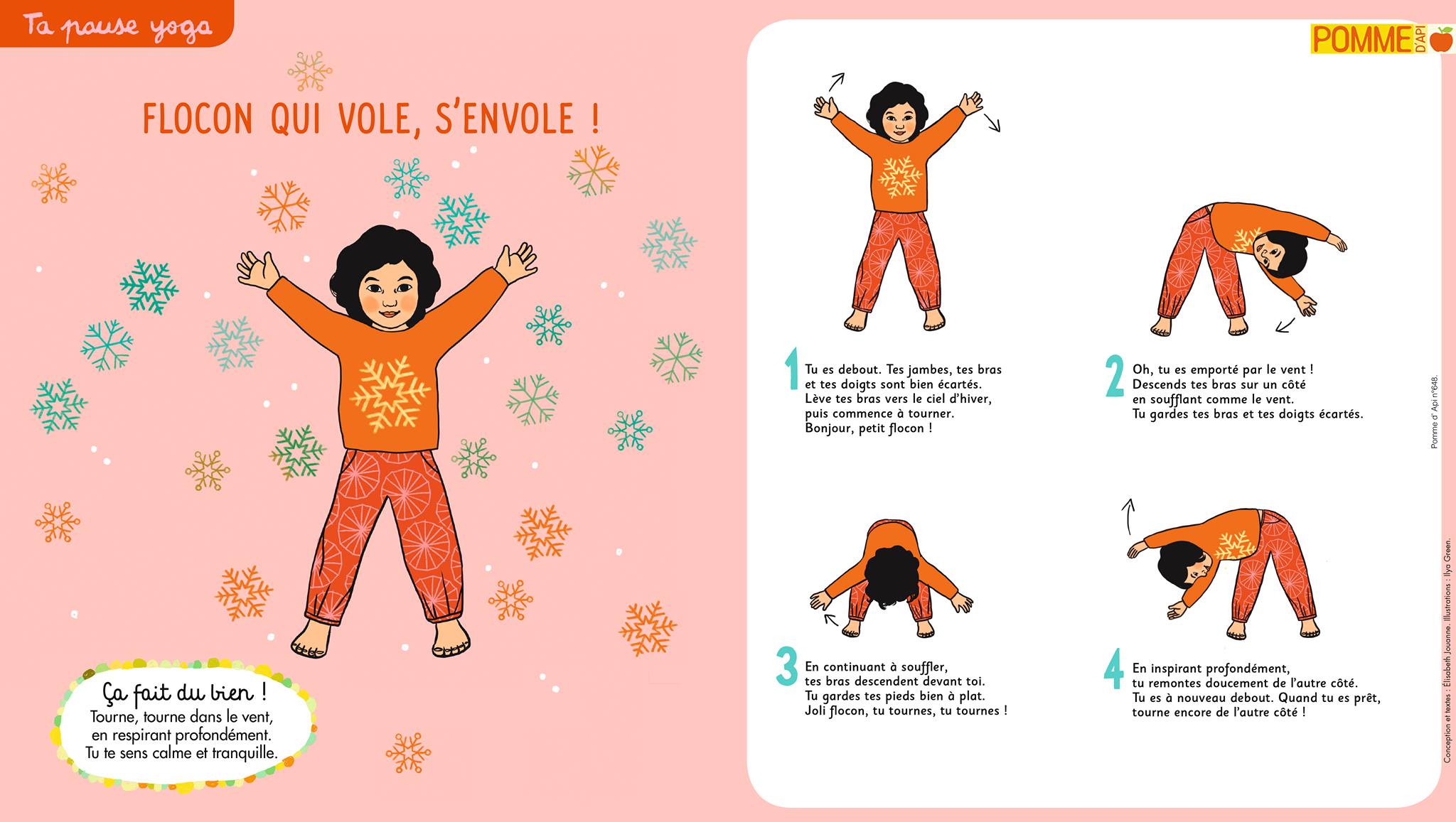 Flocon qui s’envole:Tourne, tourne le vent, en respirant profondément. Tu te sens calme et tranquille.