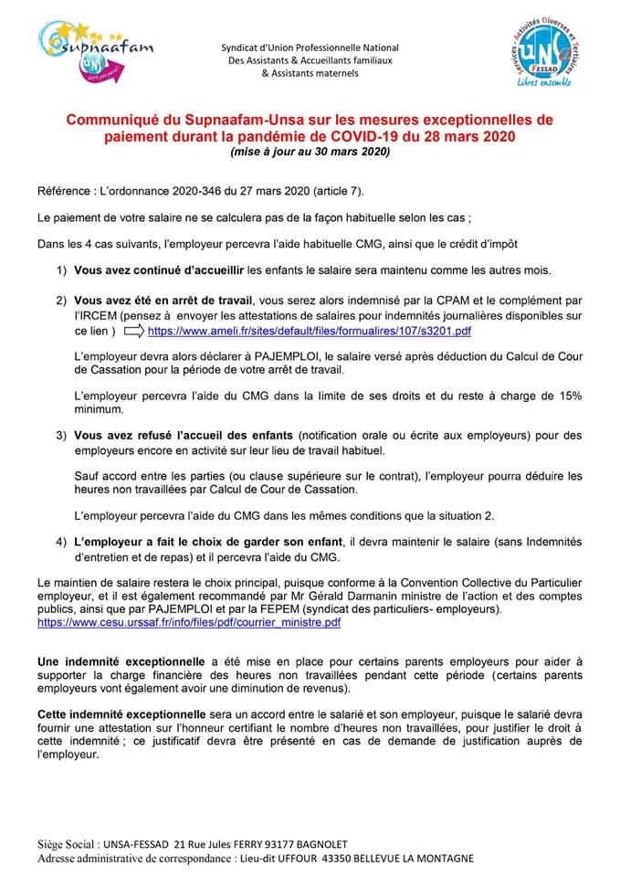 Sachant, que l’aide de Pajemploi CMG est maintenu en cas de versement du salaire normal, ainsi que le crédit d’impôt.