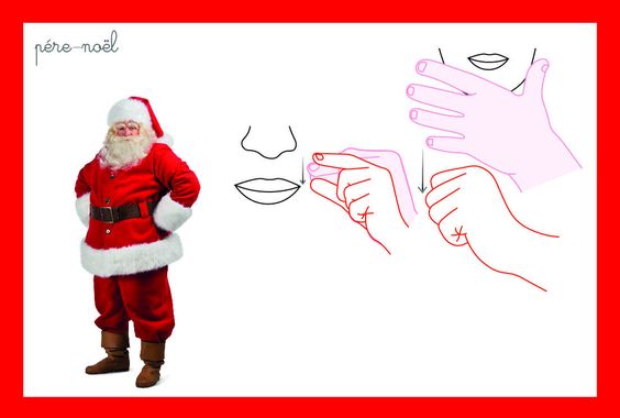Voici quelques signes que l’on peut rajouter lorsqu’on chante cette chanson sans oublier de faire des gros ATCHOUM!! de tousser HUHUM! et de faire CHCHUT!! pour que le père noël dorme.