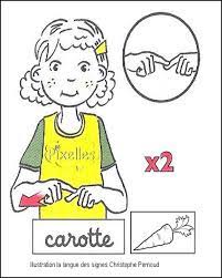 - on peut ensuite faire le signe carotte et montrer le nez