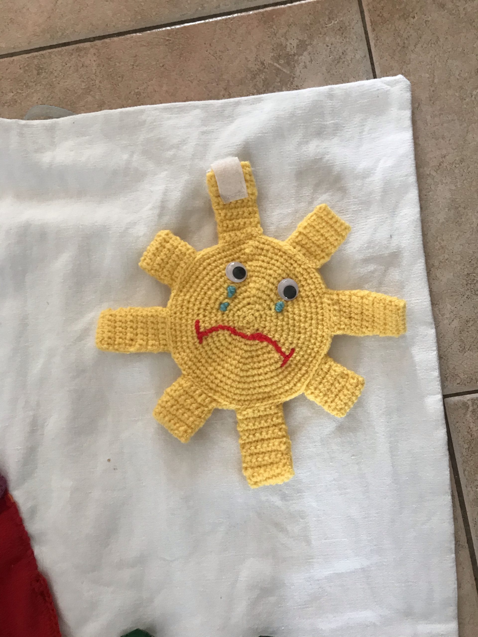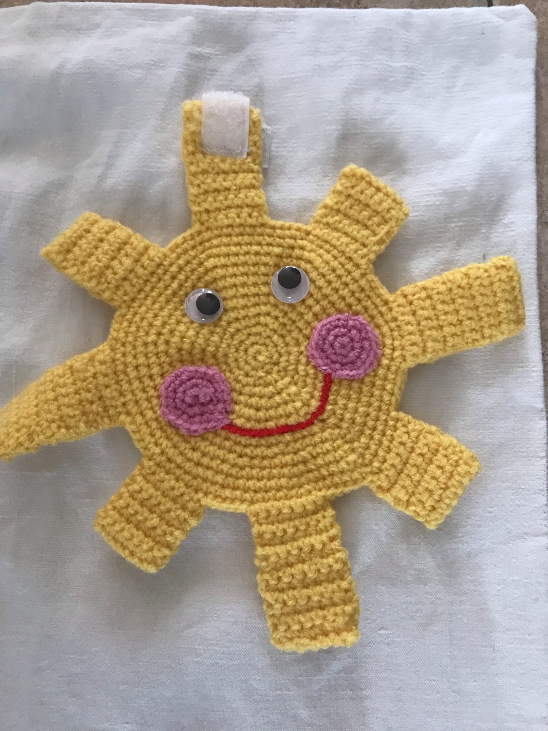 - de la laine jaune pour le soleil que j’ai réalisé au crochet.