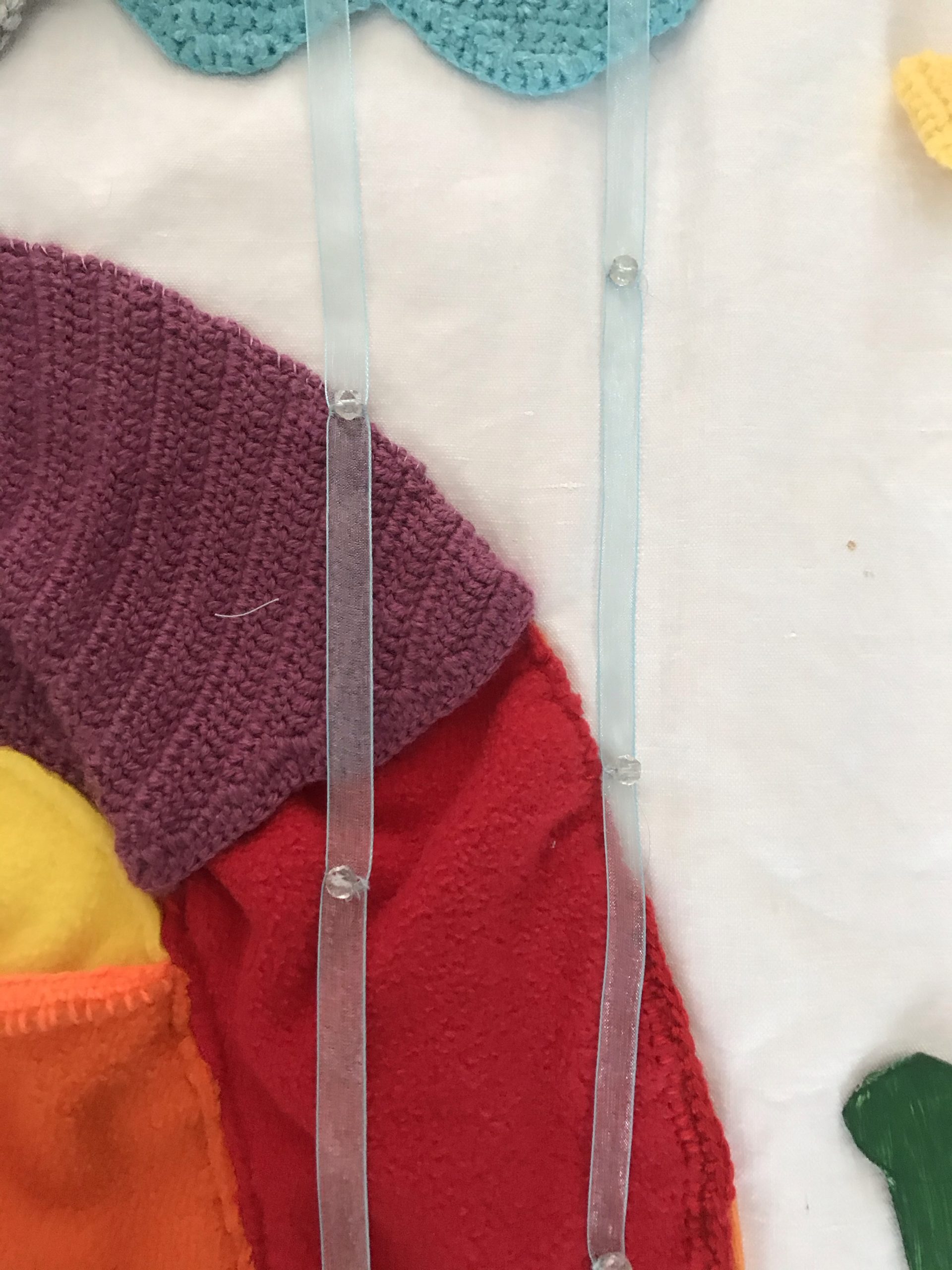 - du ruban bleu ciel transparent et des perles pour la pluie