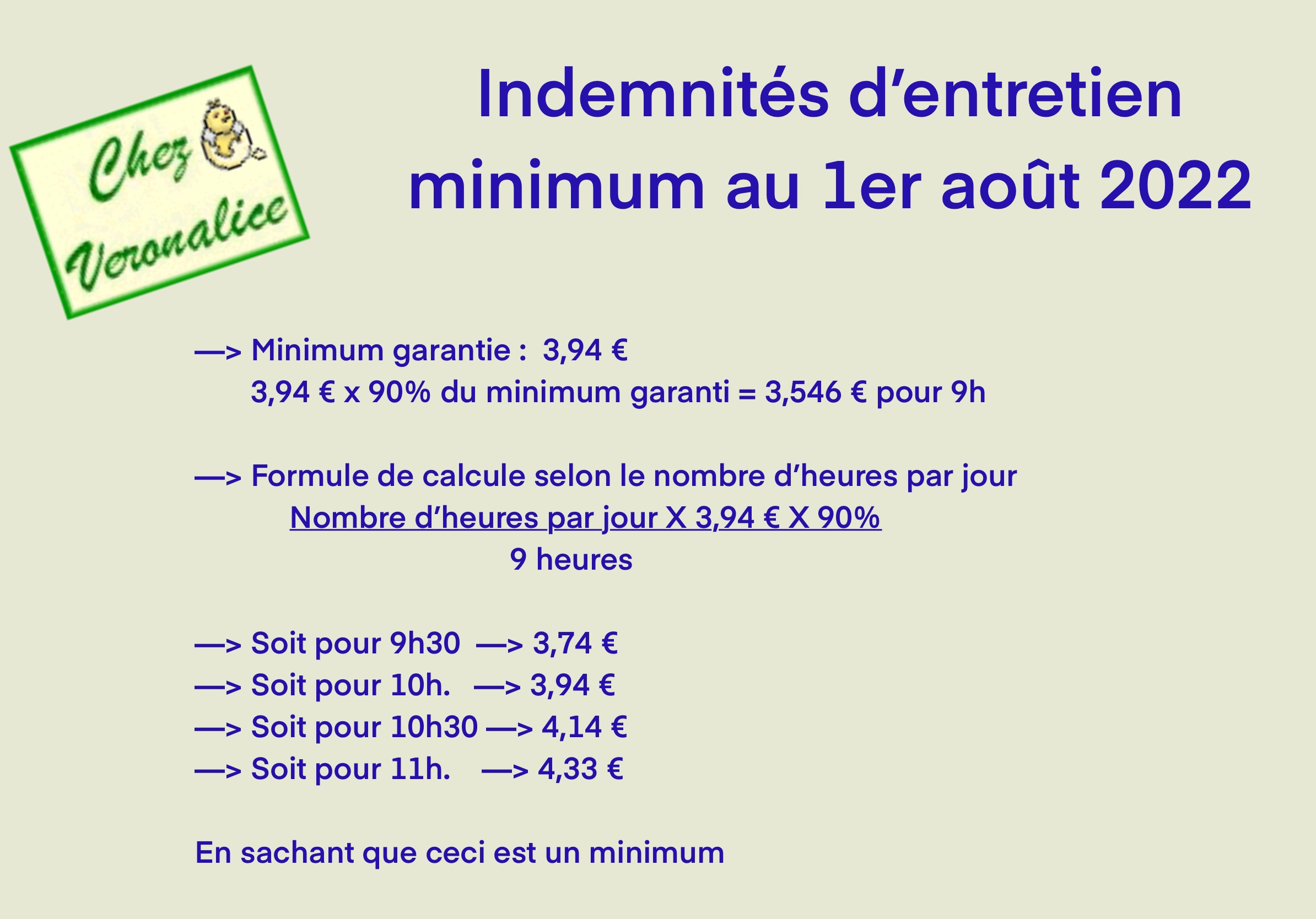 le SMIC augmentant au 1er août 2022 de 2% le brut passe de 10,85€ à 11,07€