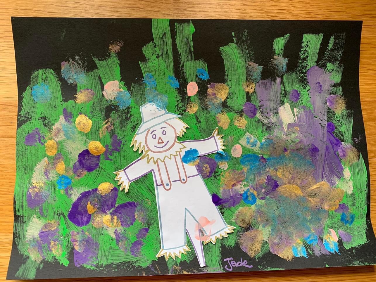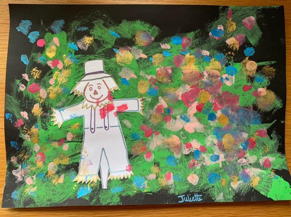 j’ai créé cet épouvantail pour réaliser dessus une activité peinture.
