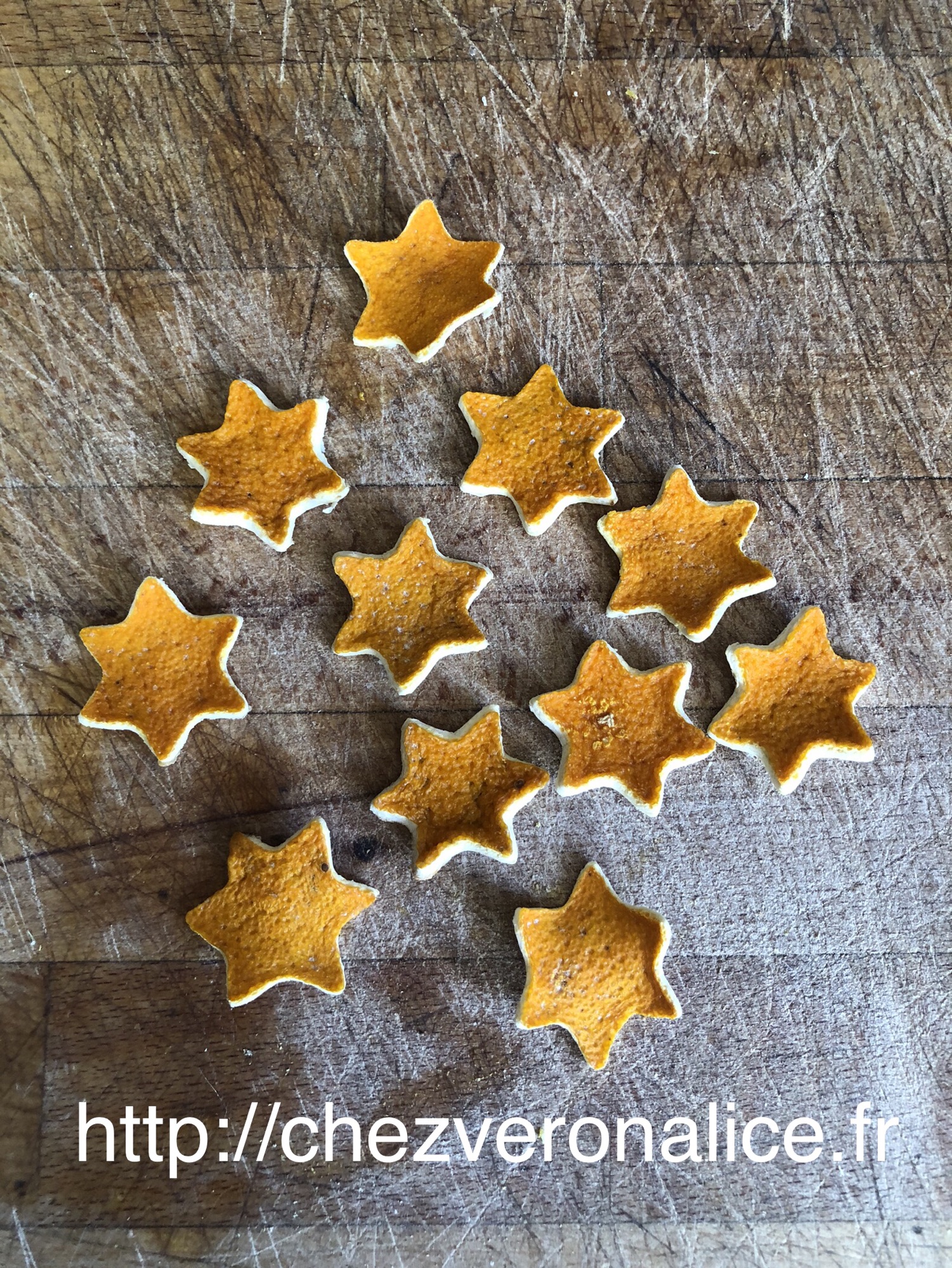 Les étoiles avec une orange pour décorer vos plats ou autres pour la période de Noël. Ne jetez plus vos peaux d’orange ou de clémentine pour aussi parfumer votre maison.