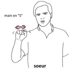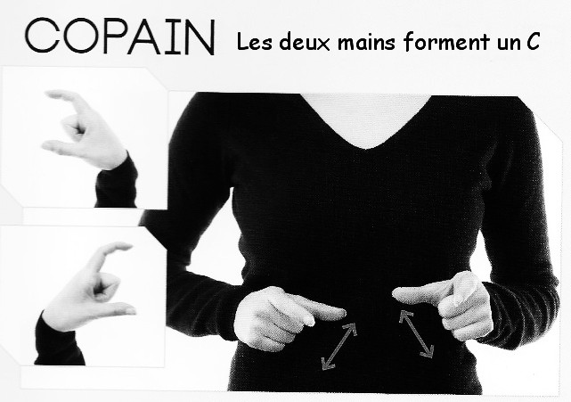 j’ai trouvé certain signe sur le net et d’autre du livre que je vous conseille d’acheter « dictionnaire la langue des signes, mot et expressions illustrés de chez Aedis » il coute 12 € et d’autre signe sont de Monica companys