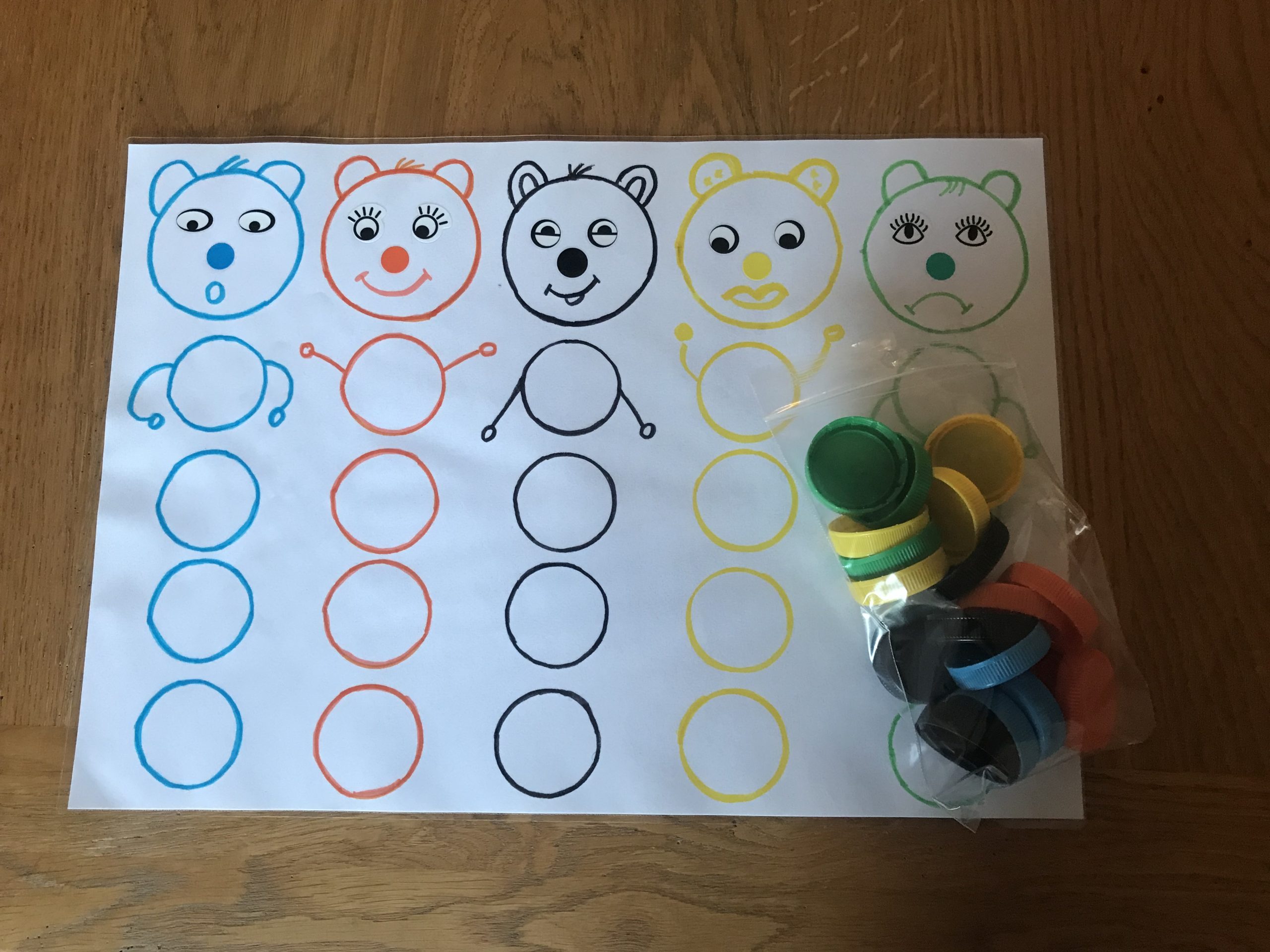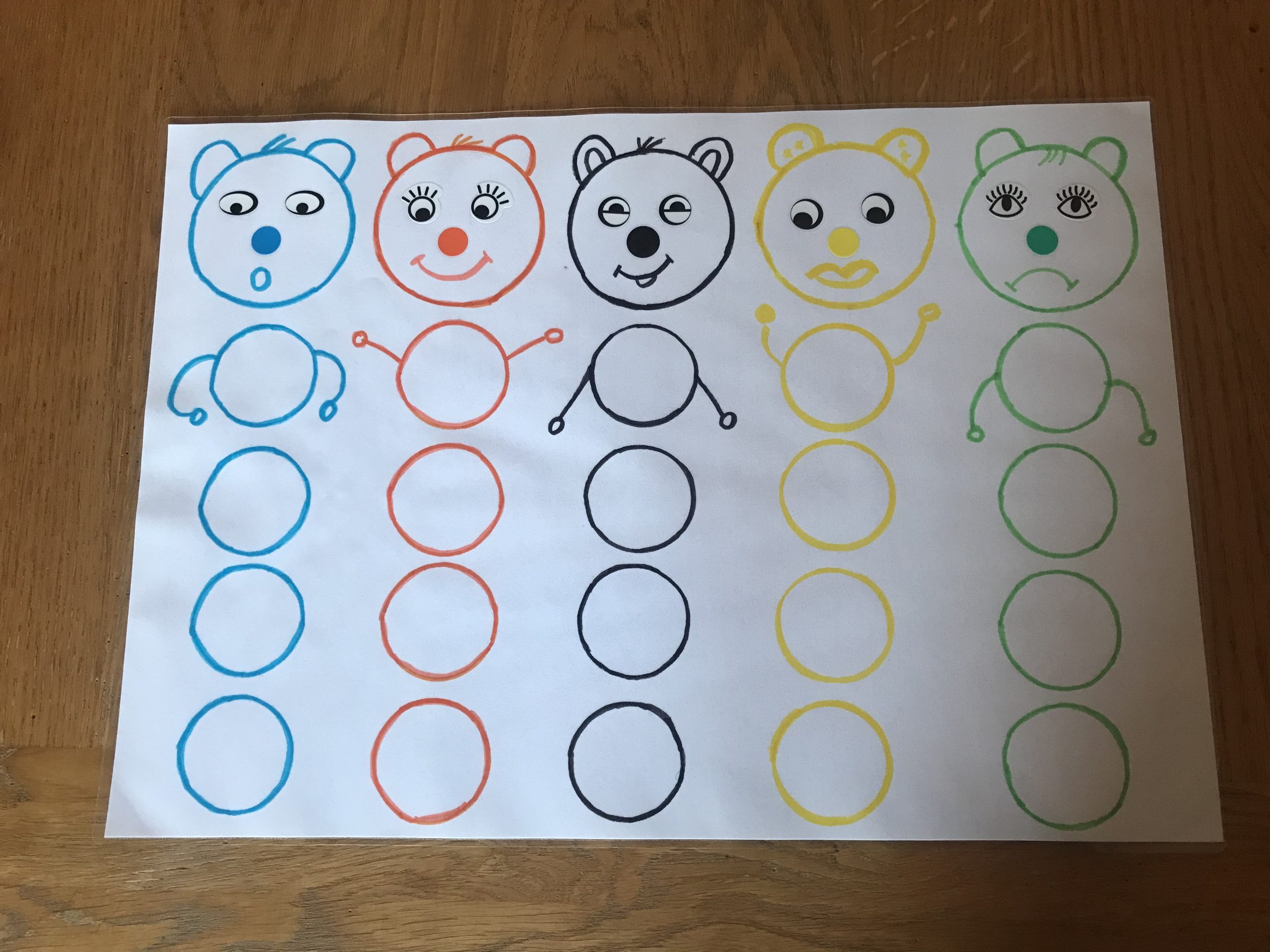J’ai fait mon gabarit sur un papier A3 pour avoir plus d’espace pour mes 5 couleurs mais vous pouvez le faire sur du A4 en ne proposant que 2 couleurs.