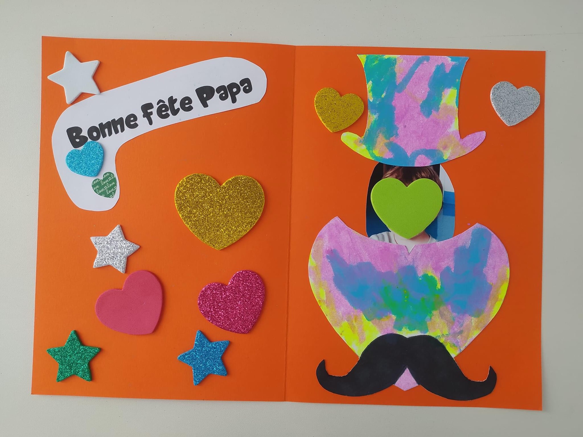 Vous pouvez aussi lui laisser le ventre vide et ne pas coller de scotch à l’arrière, peindre une autre feuille avec plein de couleur et venir coller le poisson au ventre vide dessus.