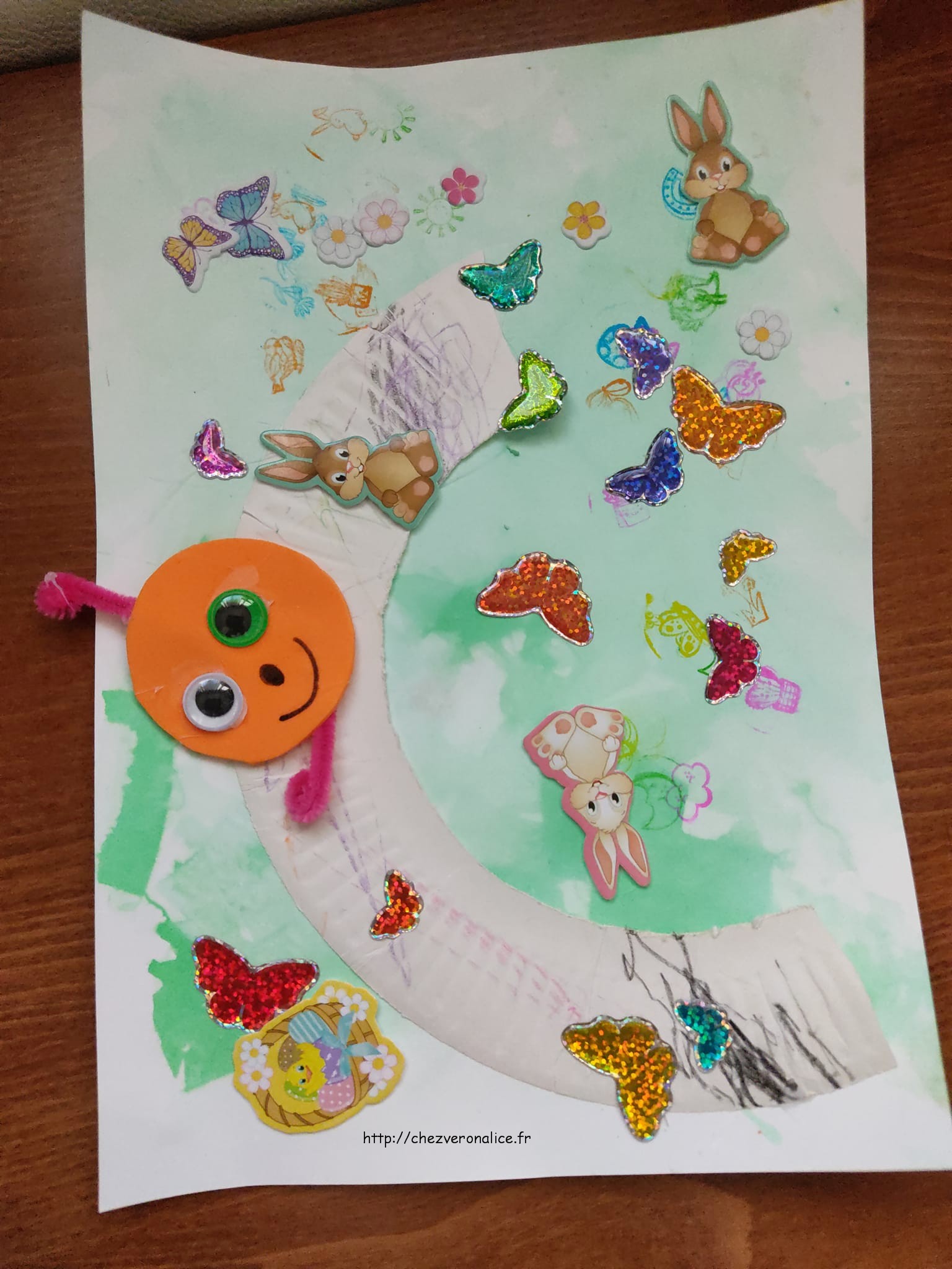 En premier il vous faudra découper la boite d’oeuf à la longueur voulu de la chenille. Faire peindre l’enfant avec différente couleur chaque alvéole. Une fois sec vous n’aurez plus qu’a finaliser avec le pistolet à colle pour y mettre les yeux sauf si vous en avez des collant, rajouter le nez. Ensuite vous n’aurez plus qu’a placer les antennes en faisant un petit trou avec une pointe et à les pousser dans le trou avec l’aide d’un cure dent ou autre pointe.