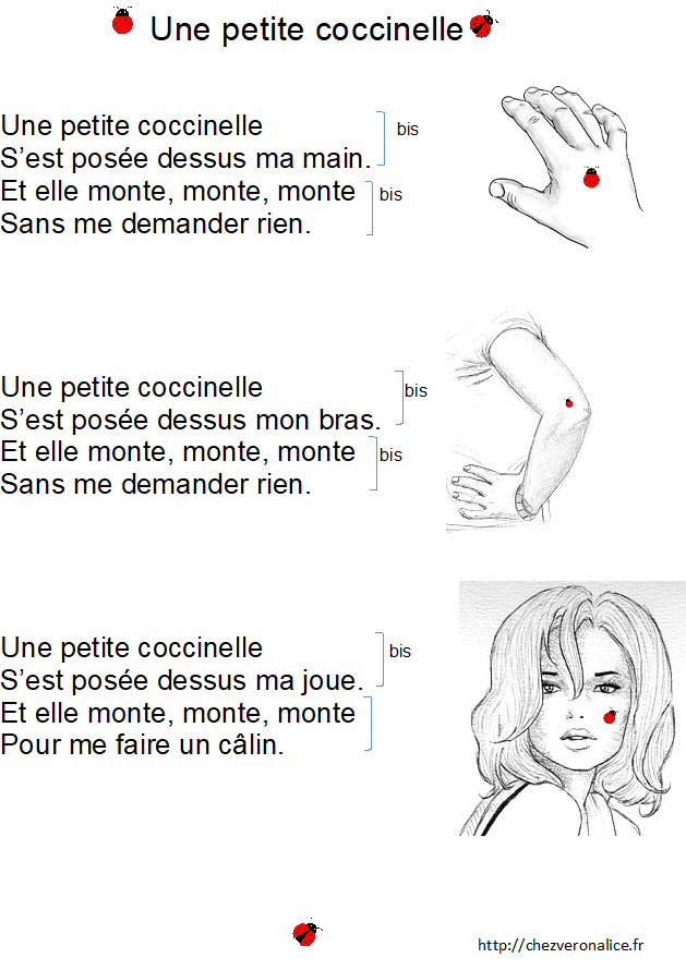 On la chante en pointant l’index sur le creux de la main pour mimer une poule qui picore.