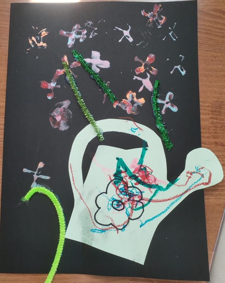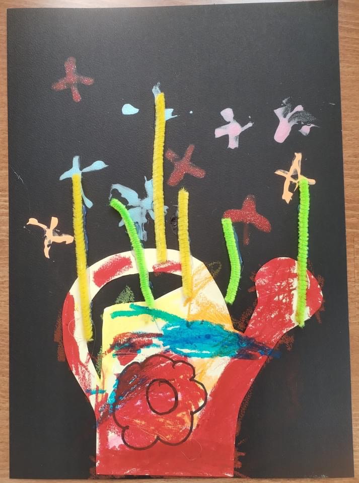 D’avoir une feuille de base couleur aux choix un peu épaisse pour y coller l’arrosoir, fleur