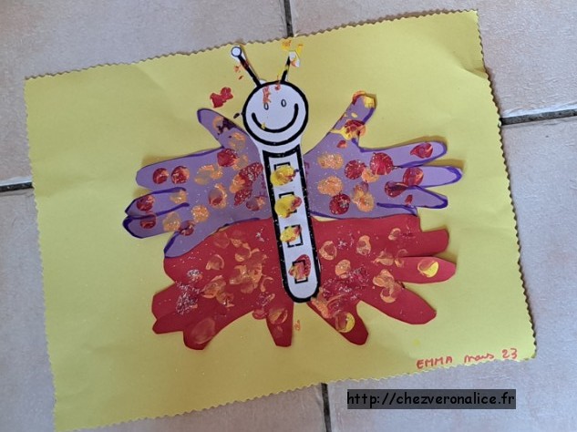 Une fois la réalisation terminé plastifier le papillon et faire un trou au petit rond qui se trouve à la pointe de la queue. Vous pourrez y rajouter de jolies rubans de couleurs.