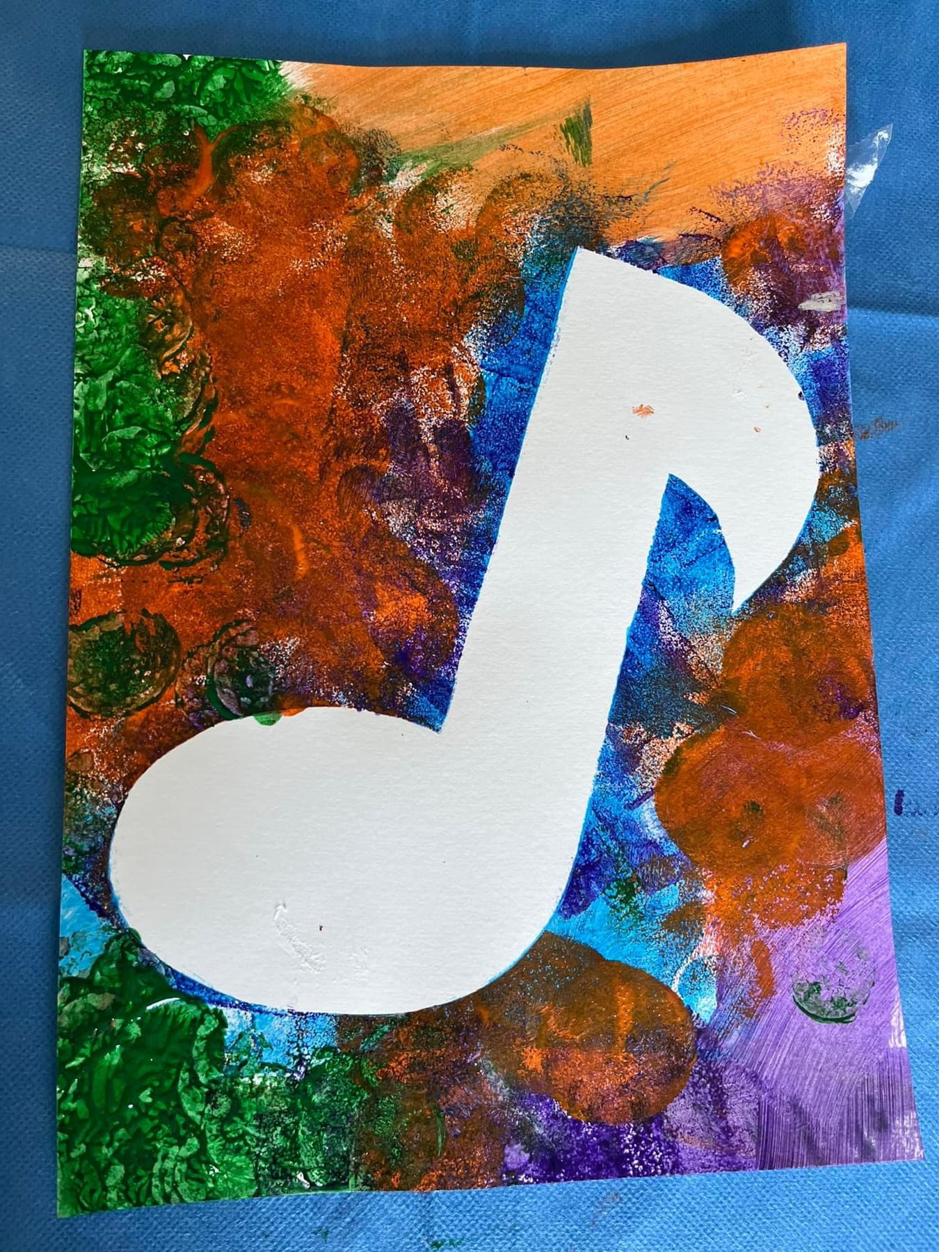 - Peinture de font au choix mais je dirai bleu ciel et blanc sur un font de papier couleur